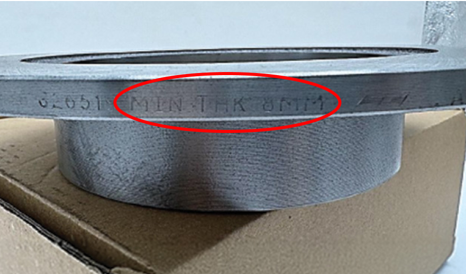 Cada disco cuenta con un espesor mínimo de seguridad, indicado por el fabricante y medido con calibrador (éste se encuentra en la ceja del rotor). Si el grosor está por debajo de este límite, es necesario reemplazarlos